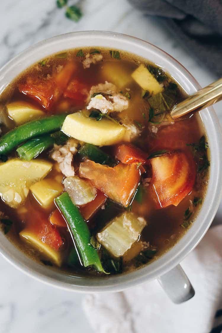 Paleo Turkey Meatball Zoodle Soup This broth-based soup from Paleo Running Momma is loaded with protein and fiber from zucchini and ground turkey, and its a great low-carb, low-sugar meal for when you need something healthy but with enough nourishment to fill you up for hours. You wont miss pasta noodles one bit. Paleo Running Momma