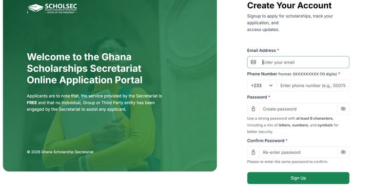 All applications must be completed online via the official Scholarship Portal: www.apply.scholarships.gov.gh