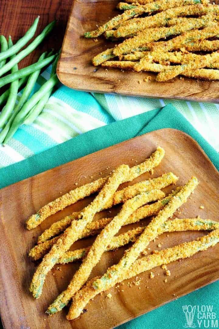 Crispy Oven-Fried Green Beans Introducing green beans your Thanksgiving guests will actually want to eat. These 'fried' beans offer a satisfying crunchy, crispy texture without tons of breading or frying oils. GET THE RECIPE Per serving: 145 calories, 11.6 g fat (7 g sat), 7.6 g carbs, 465 mg sodium, 3 g fiber, 5.2 g protein Courtesy