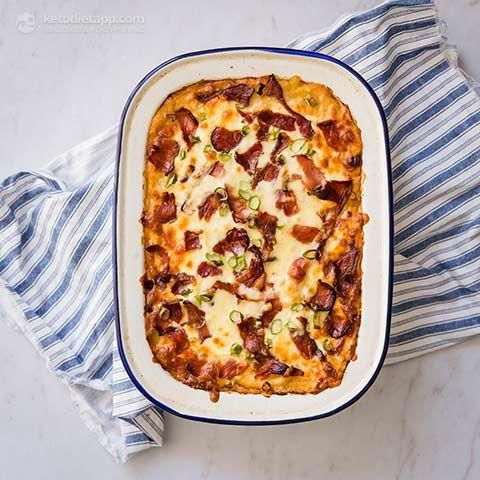 Low-Carb Loaded 'Potato' Casserole Made with cauliflower instead of potatoes, this casserole delivers on flavor while keeping carbs low. Plus, it's topped with bacon, so enough said. GET THE RECIPE Per serving: 334 calories, 28 g fat (14.6 g sat), 11.3 g carbs, 597 mg sodium, 5.3 g sugar, 3 g fiber, 11.5 g protein Courtesy