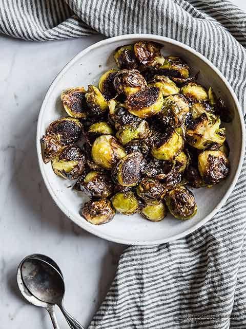 Low-Carb Crispy Roasted Brussels Sprouts Brussels sprouts are a super-easy side to pair with turkey, chicken, or ham and these crispy sprouts pack loads of crunchy goodness. Add whatever spices you like for extra kick! GET THE RECIPE Per serving: 155 calories, 10.6 g fat (1.5 g sat), 13.6 g carbs, 328 mg sodium, 3.3 g sugar, 5.8 g fiber, 5.1 g protein Courtesy