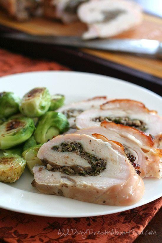 Mushroom and Sage Rolled Turkey Breasts Feeling fancy? Make this stuffed turkey for Thanksgiving this year. That mushroom and sage filling is absolutely to-die-for. GET THE RECIPE Per serving: 311 calories, 11.39 g fat (5.66 g sat fat), 1.9 g carbs, 1130 mg sodium, 0 g sugar, 0.7 g fiber, 45.3 g protein Courtesy