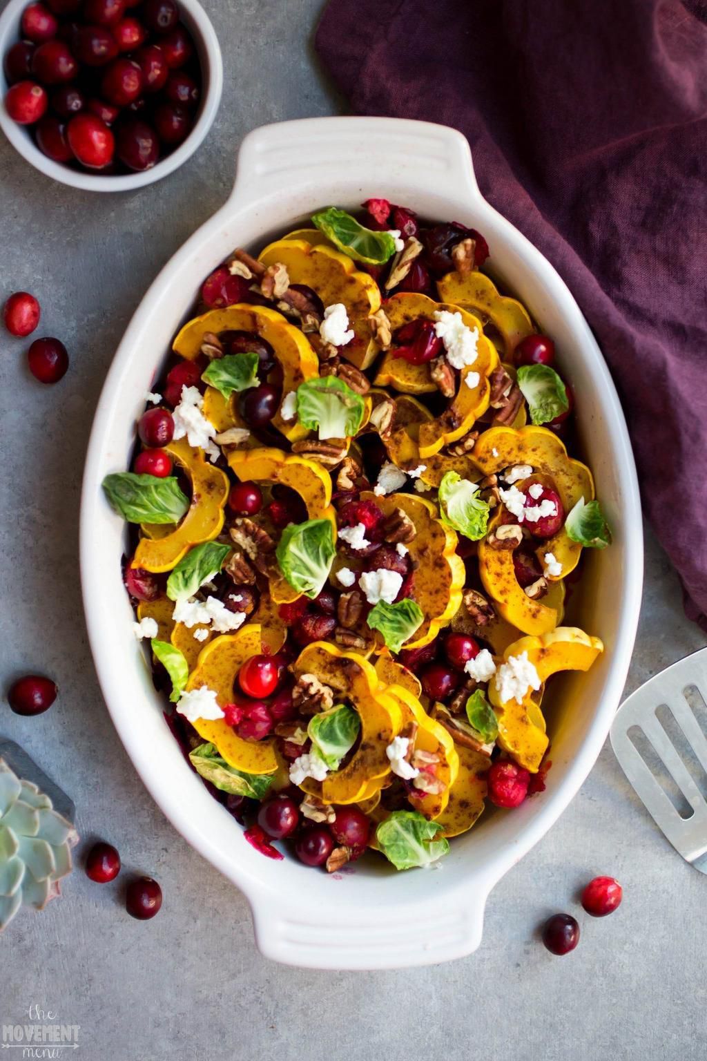 Paleo Delicata Squash Bake Squash, cranberries, pecansthis colorful side dish screams holiday season! It's packed with antioxidants, fiber, and protein that fill you up (and really pops on the table). GET THE RECIPE Per serving: 239 calories, 13 g fat (8 g sat), 28 g carbs, 7 g sugar, 100 mg sodium, 5 g fiber, 7 g protein Courtesy