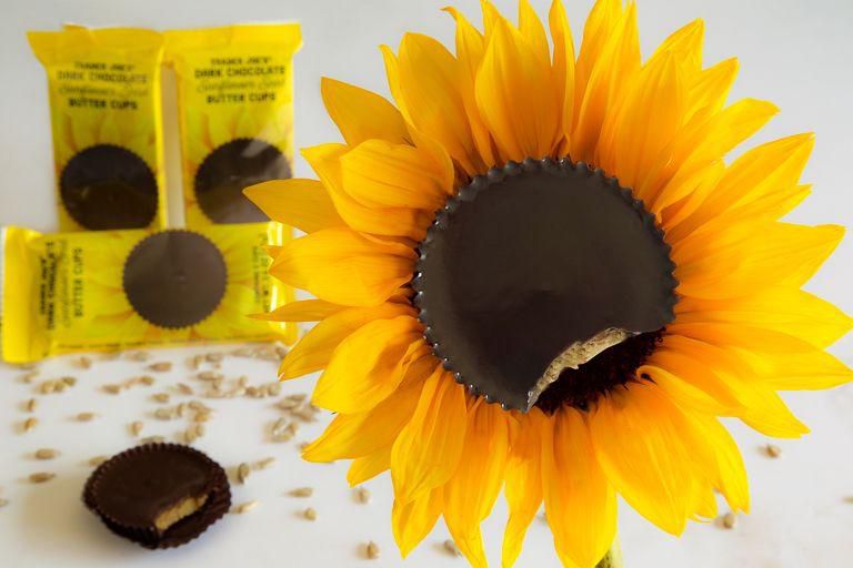 Dark Chocolate Sunflower Seed Butter Cups Chocolate plus any type of nut butter is the ideal snack in my book. Per serving : 230 calories, 18 g fat (7 g saturated fat), 16 g carbs, 11 g sugar, 95 mg sodium, 3 g fiber, 4 g protein Trader Joe's
