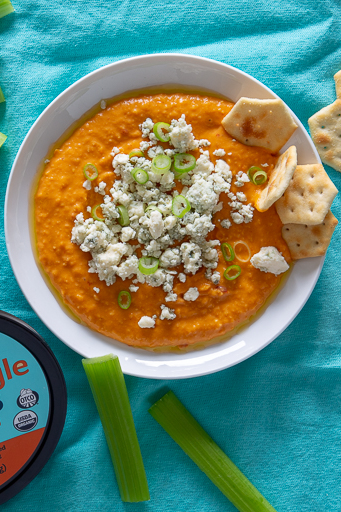 Organic Buffalo-Style Hummus If Buffalo wings are your jam, you'll be straight-up obsessed with this low-cal spicy hummus. Per serving : 50 calories, 1.5 g fat (0 g saturated fat), 6 g carbs, 1 g sugar, 160 mg sodium, 2 g fiber, 2 g protein Trader Joe's