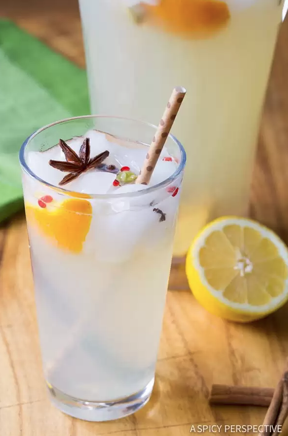 Mulled Lemonade Cozy up your favorite summer BBQ drink with earthy mulling spices that add as much health benefit as they do taste. GET THE RECIPE Per serving: 117 calories, 1 g fat (1 g saturated), 30 g carbs, 26 g sugar, 10 mg sodium, 2 g fiber, 1 g protein A Spicy Perspective