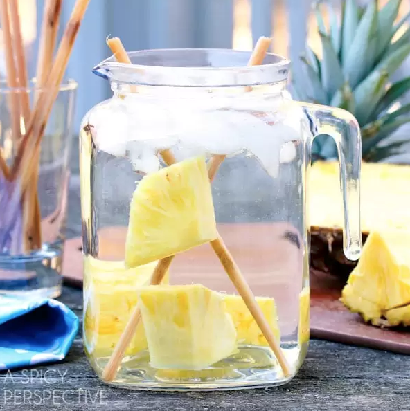Pineapple Sugarcane Water No need to fear the word sugar in the title; with so few calories, this sweet n sour drink is hardly a dessert in a cup. GET THE RECIPE Per serving: 11 calories, 1 g fat (0 g saturated), 3 g carbs, 2 g sugar, 17 mg sodium, 1 g fiber, 1 g protein A Spicy Perspective