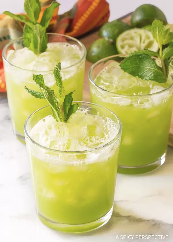 Sparkling Mint Melon Limeade With all the naturally sweet and citrusy flavors going on, you wont even notice this healthy take on a mojito uses sparkling water instead of rum. GET THE RECIPE Per serving: 38 calories, 0 g fat (0 g saturated), 10 g carbs, 9 g sugar, 2 mg sodium, 0 g fiber, 0 g protein Cotter Crunch