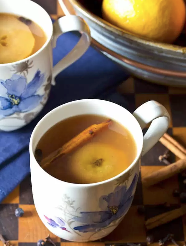 Apple Cider Wassail Made in your slow cooker with hibiscus tea, mulled cider, and fragrant herbs and spices, this booze-free beverage warms you up from the inside out. GET THE RECIPE Per serving: 207 calories, 0 g fat (0 g saturated), 50 g carbs, 39 g sugar, 14 mg sodium, 2 g fiber, 1 g protein A Spicy Perspective