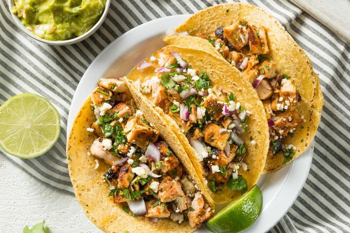 Crock-Pot Chicken Tacos with Avocado-Cilantro Sauce Tender chicken is the perfect base for these tacos' tangy, creamy cilantro sauce. GET THE RECIPE Per serving: 382 calories, 13 g fat (2 g sat), 40 g carbs, 1075 mg sodium, 6 g fiber, 5 g sugar, 24 g protein 40 Aprons