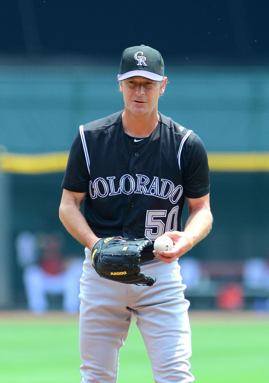 Jamie Moyer At age 44, shortly after being traded to the Phillies, Jamie Moyer set a franchise record as the oldest pitcher to record a win. In 2008, Moyer became the oldest active player in Major League baseball at 45. His final win came when he was 49 years old, playing for the Colorado Rockies in 2012. Mark Cunningham - Getty Images