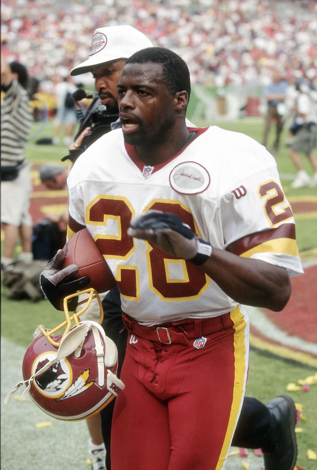 Darrell Green The two-time Super Bowl winner set a record at the age of 42 in 2002 as the oldest NFL defensive back. Shortly before this, he also set a record as the oldest player with an interception, at the age of 41. Focus On Sport - Getty Images