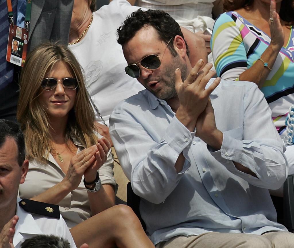 Jennifer Aniston and Vince Vaughn Fresh off her divorce from Brad, Jen Aniston started dating Vince Vaughn. The actors met on the set of a film that would foreshadow their fate : The Break-Up. Their busy schedules kept them away from one another. After Jen flew to London in 2006 to see Vince, break-up rumors were confirmed a few short weeks later . JACK GUEZ - Getty Images