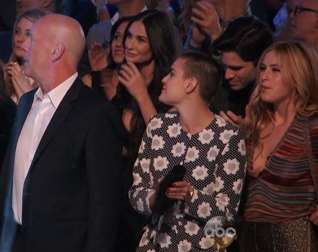 When Demi Moore and Bruce Willis didn't sit next to each other. While rooting for their daughter, Rumer Willis, at the premiere of season 20, fans were quick to notice the innate awkwardness between the divorced couple, with Demi sitting a row behind Bruce. ABC