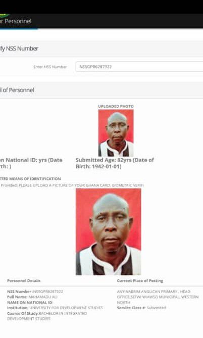 In the same service year, 91-year-old Ruth Abdulai, supposedly a Development Studies graduate from UDS, was posted to Adakura Primary School in the Upper East Region. There’s also an 82-year-old Mahamadu Ali, another UDS graduate, who was posted to Anyinabrim Anglican School in Sefwi Wiawso in the Western North Region.