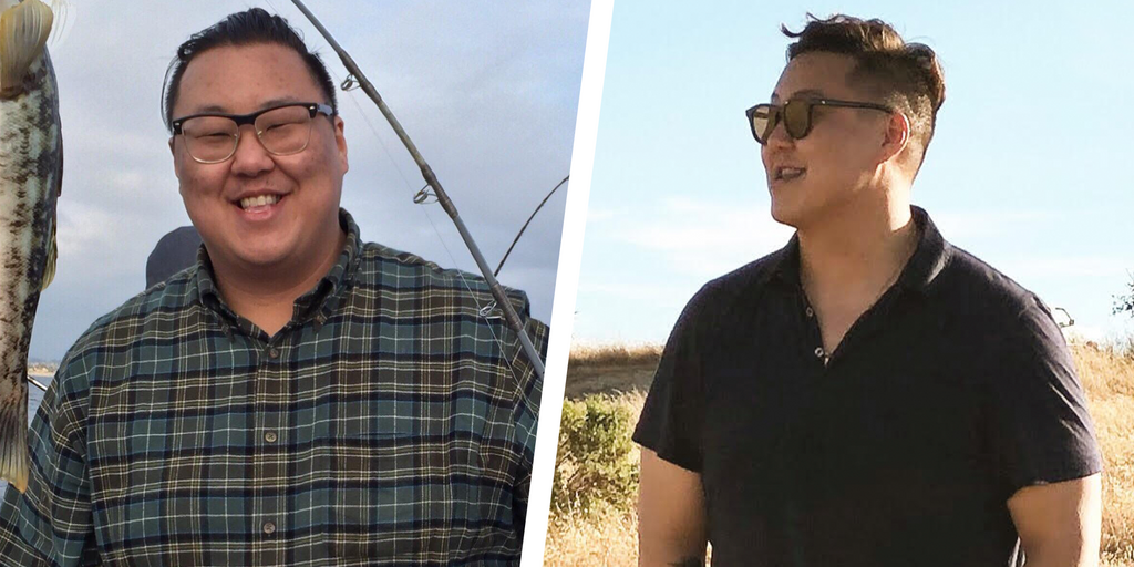 3) Andrew Kim: 90-pound weight loss Andrew Kam is a realist. At 27 years old, hes been through enough to know theres no magic pill that will make you happy, and no quick fix to getting healthy.So hes not letting the fact that hes lost 90 pounds in 10 months go to his head. Because he knows the hardest part of his weight loss transformation keeping it off for life is still ahead. As a kid, Kam noticed he was always bigger than other kids."The earliest memory I have of noticing that I was overweight was in elementary school," Kam told MensHealth.com. At the time, his mom went to purchase him a t-shirt he needed for orchestra. The childs XL no longer fit instead, he had to wear an adult large. "I think that was the first time I actually started to be self-conscious about like my size," he said.Though he was bigger, Kams weight issues compounded during freshman year of college, when his mother died after battling cancer."It was an awful time in my life," he said. "That made me super depressed." Kam went to therapy to deal with his grief and other mental health issues. But as he began eating foods that comforted him, his physical health took a turn for the worse. Read more about his weight-loss story . Courtesy of Andrew Kam