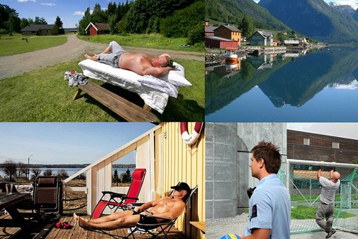 Prisoners at Bastøy Prison spend their spare time playing tennis, horse riding, fishing, and sunbathing.