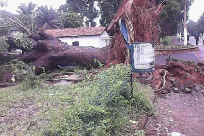 The Wednesday torrential rains brought down a big mahogany tree in front of the School of Agriculture, University of Ghana.