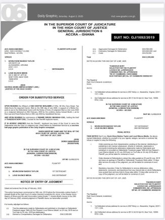 On July 30, 2025, Mr. Ankomah filed a motion ex parte for substituted service. The court granted the application, allowing him to serve Taylor with the Notice of Entry of Judgement and Penal Notice through a one-time half-page publication in the Daily Graphic.