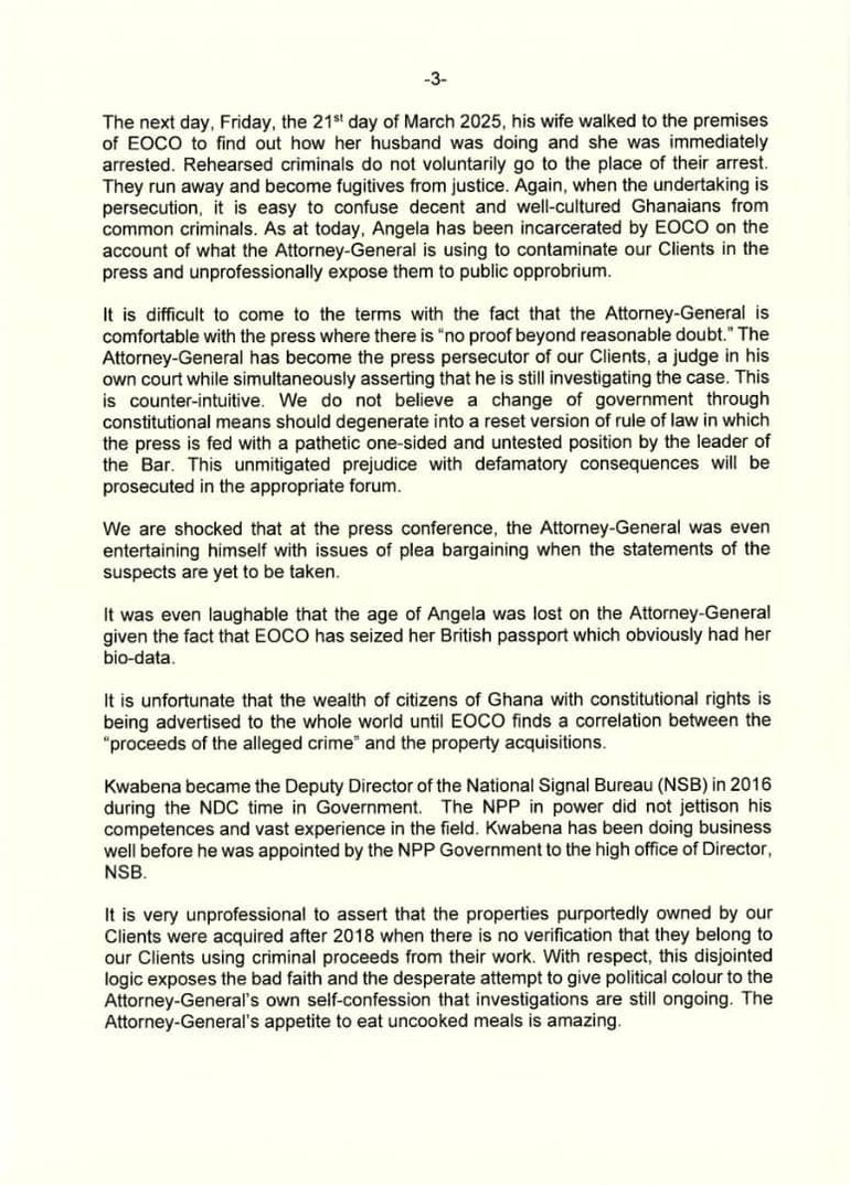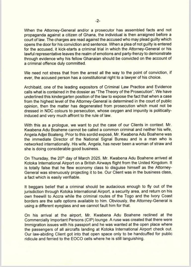 Responding to allegations of acquiring luxury properties with proceeds from corruption, Mr Adu-Boahene’s lawyers argued that neither he nor his wife could be labelled as common criminals and expressed shock at the A-G’s statements.