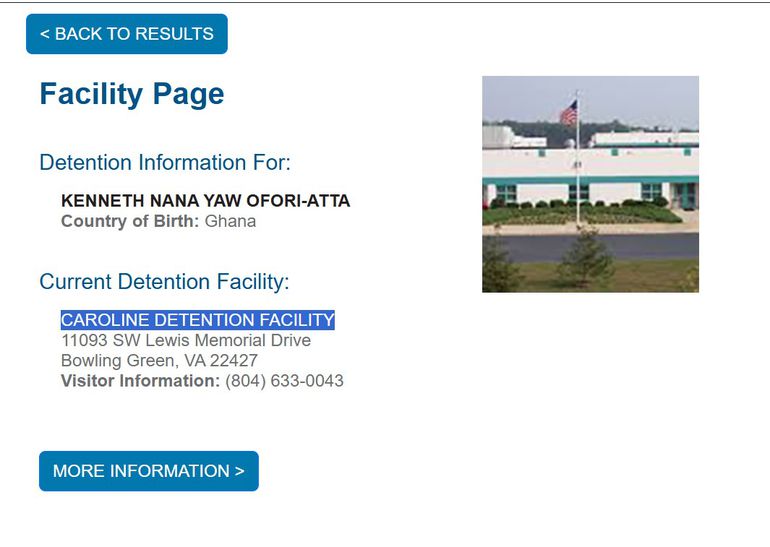 The Caroline Detention Facility is an immigration detention centre located in Bowling Green, Virginia. It has recently drawn international attention following the detention of Ghana’s former Minister for Finance, Mr Ken Ofori-Atta.