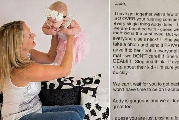A mother in Australia who posted a constant stream of proud updates about her baby daughter on Facebook has expressed shock after receiving an angry letter from a friend urging her to end the commentary and "give us all a break".