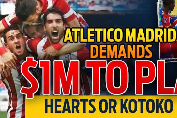Spanish giants Atletico Madrid are asking for a 1 milllion dollar appearance fee to play one of Ghana’s two big sides, Hearts of Oak or Kotoko.