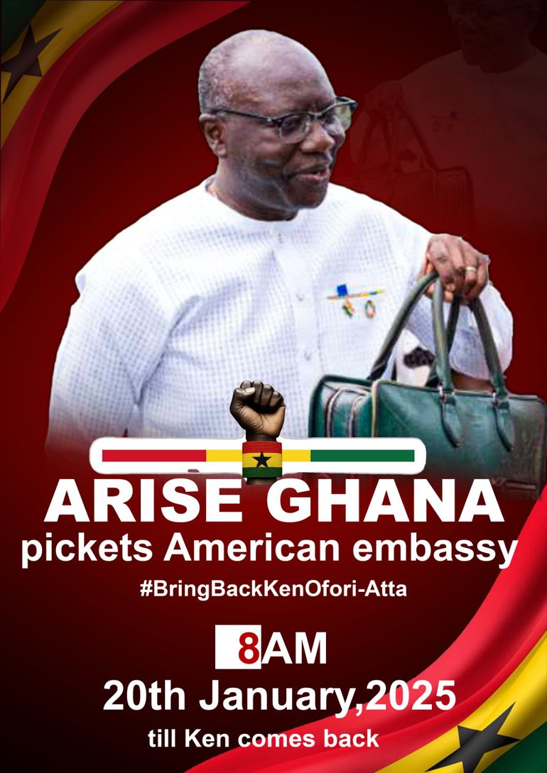 Pressure group Arise Ghana has announced plans to embark on an indefinite picketing exercise at the United States Embassy in Accra, beginning Monday, 20 January 2026, to demand the extradition of former Finance Minister Ken Nana Yaw Ofori-Atta to Ghana to face corruption-related charges.