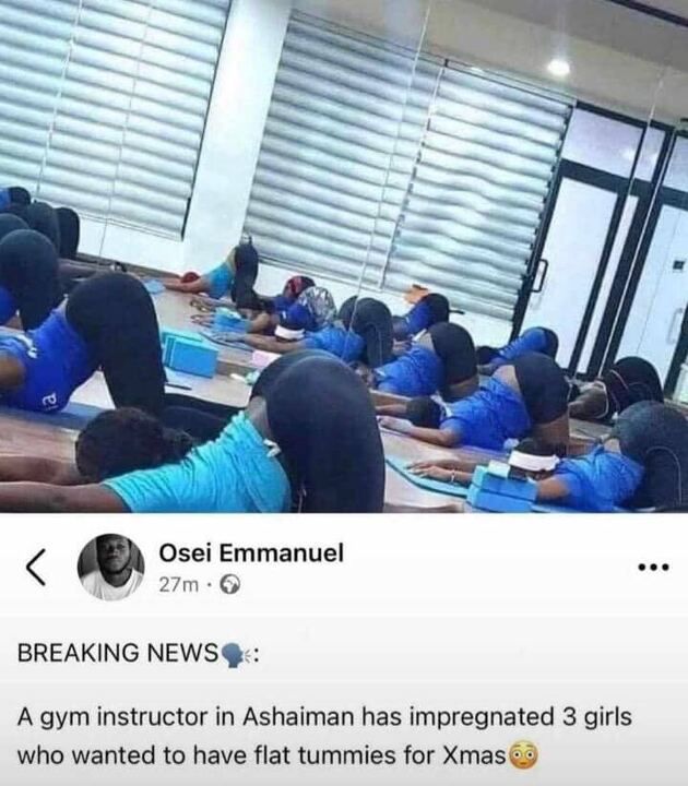 Ashaiman gym instructor reportedly impregnates 3 girls who wanted flat tummy for Xmas