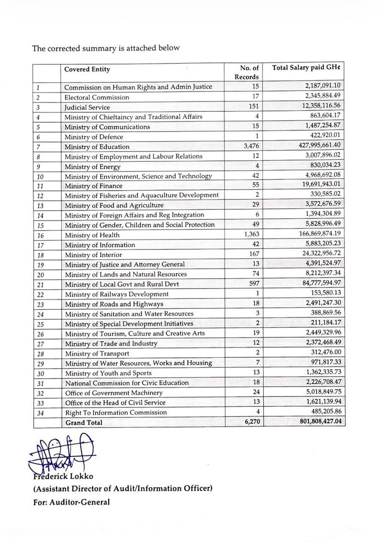 The original audit report highlighted serious weaknesses in Ghana’s payroll system, revealing that more than 6,000 government employees received over GH¢800 million in unearned salaries during the review period.