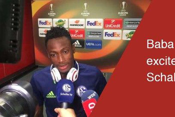 Ghana defender Baba Rahman is over excited after scoring his debut goal for his German club, Schalke 04, in the UEFA Europa league match against OGC Nice on Thursday night.