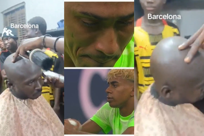 A passionate FC Barcelona supporter in Ghana calmly fulfilled a public promise after vowing to present himself to fellow football fans to be completely shaved if the club failed to win their Champions League semifinal match against Inter Milan. pic.twitter.com/kZTM7wQp2o