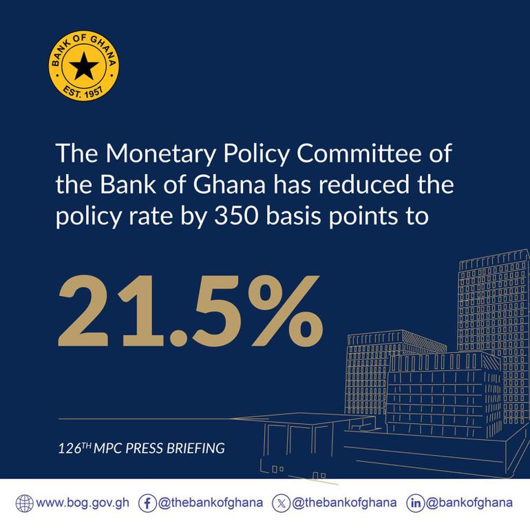 BoG’s Monetary Policy Committee cuts policy rate from 25% to 21.5%