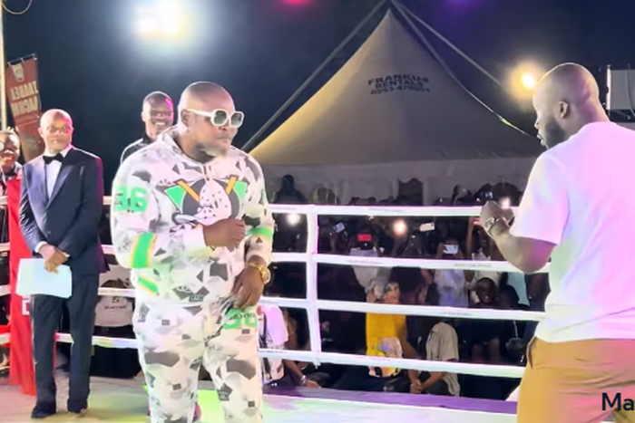 Aka Ebenezer wowed the audience with his fast footwork, dodging Bukom Banku’s playful swings with ease. Though Bukom Banku is known for his powerful punches in the ring, he avoided landing any serious hits, choosing instead to joke around and make people laugh.