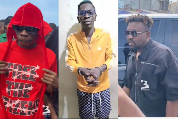 A group of high-profile Ghanaian celebrities, including Bullet, MadeinGhana, Captan and several others, thronged the premises of the Economic and Organised Crime Office (EOCO) to show solidarity with dancehall star Shatta Wale, who is currently in detention as part of ongoing investigations into alleged money laundering.