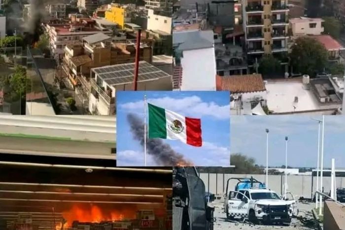 Outside the stadium, chaos persisted, with fires, blocked roads, and flight cancellations at Puerto Vallarta airport 550 km away.