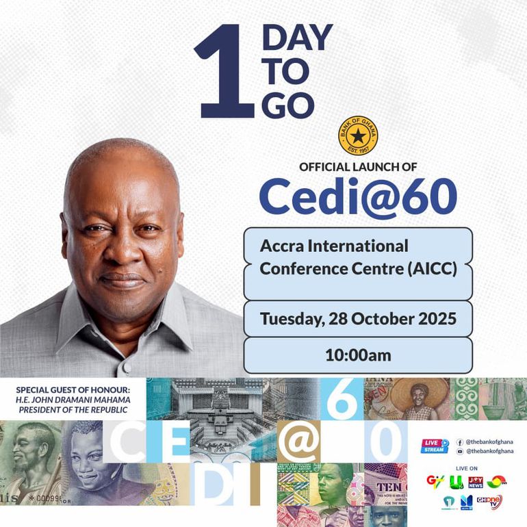 The Bank of Ghana (BoG) has begun celebrations marking the 60th anniversary of the Ghana Cedi, starting Tuesday, 28 October 2025. The commemoration features a series of national events designed to highlight the currency’s historical and economic significance.