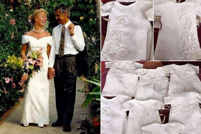 Yvonne Trimble, knowing she'd never twirl around in her wedding dress ever again, decided to donate it to Cherished Gowns for Angel Babies, a charity that transforms wedding dresses into tiny burial gowns for stillborn babies or for those who pass away shortly after birth.