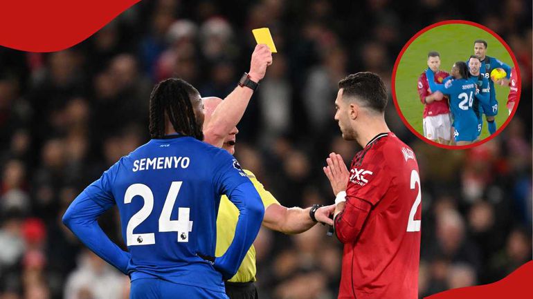 Antoine Semenyo was issued a yellow card for raising his hand to Diogo Dalot after a foul had been awarded,