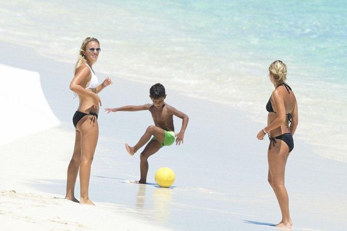 Christiano Ronaldo's son shows off impressive skills with the ball during an outing to the beach in Bahamas