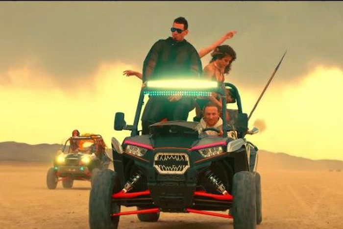The music video channels one of the biggest movies in the world right now, Mad Max with its cinematography and costume design.