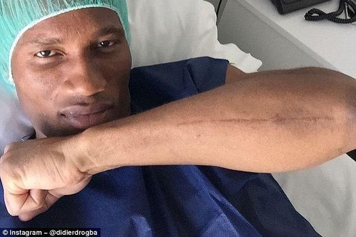 "Time to get ride of my ironman plate!!!!! Sorry I can't see my fans from Thailand and from Australia. Have fun with my people out there!!!! #Barcelona #surgery #ironman #niceoutfit," Drogba wrote.