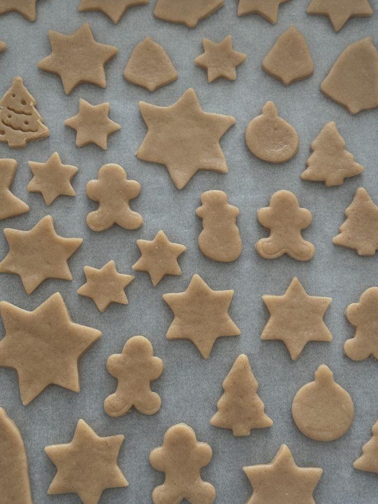 On a lightly floured surface, roll out the dough to a thickness of about 5mm (1/4 inch). Use biscuit cutters to create your desired shapes—gingerbread men, stars, or festive trees.