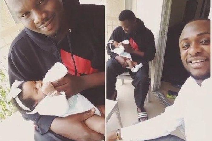 Thanks to Ubi Franklin, boss of Triple MG, we now have more photos of Dr. Sid being the ideal dad. In the photos the 'Surulere' singer is feeding his daughter.