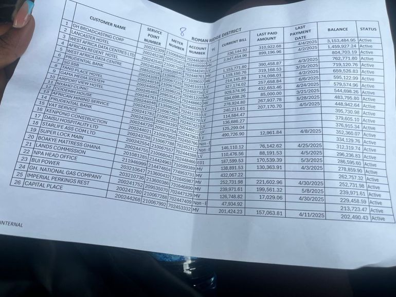 Ghana Water Limited, the country’s main water utility, owes a staggering GH¢999.6 million, while GBC was disconnected for failing to pay an outstanding GH¢3,153,484.98 despite having previously agreed to a structured repayment plan with ECG.