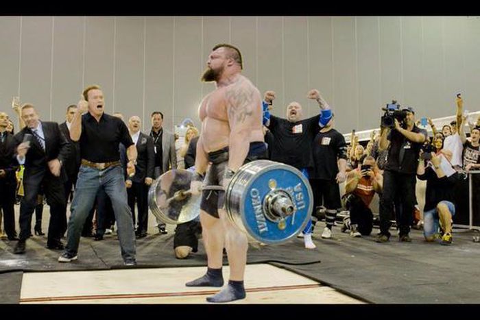 "I used to powerlfit and my record was 710lbs (332kg), so I know how much this is. I can’t even believe humanly possible," the former California Governor said.