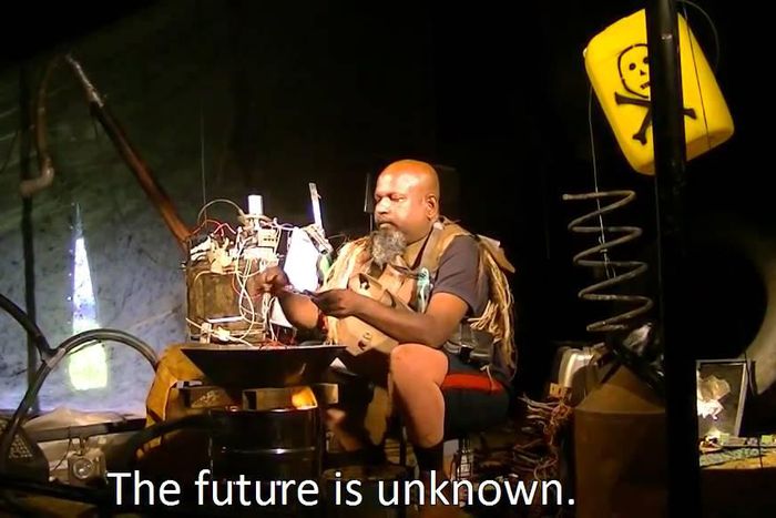 The question in all its acuteness is as follows. “ How can a human being find clothes and shelter in a poisoned and mutant world, how can one continue to live, to work, to create, for oneself and for others? "Papa Ayivi, reject among rejects, is still standing, most of the time.