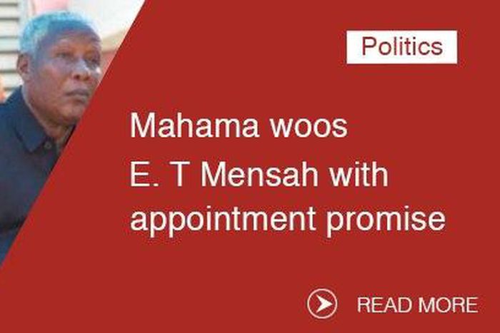 "My brother ET Mensah is a very important member of our party and we all appreciate him very much; but the time comes when you have to move on and you will move on to better things. In my administration, ET will not struggle to do something in my administration.