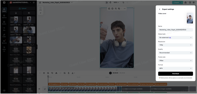 Hit "Export" on the top right once your edits are done. Choose "Publish" to share instantly on platforms or "Download" to save locally. You can set resolution, frame rate, and format before clicking "Download" Your tutorial will now feel engaging and professional.