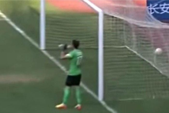 Chongqing Lifan goalkeeper Sui Weijie, conceded goal while he was sipping water during a Chinese Suepr League match.